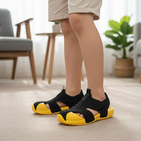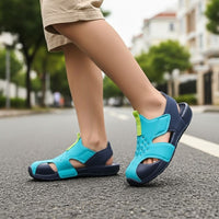 Conçue pour les garçons et les filles, la Sandale Enfant Stylée est équipée d'une semelle extérieure en EVA pour une légèreté inégalée et un amorti confortable. Sa doublure en PU offre une sensation douce contre la peau, idéale pour les petits pieds délicats. Elle est disponible en plusieurs couleurs joyeuses qui plairont à coup sûr aux enfants les plus exigeants.
